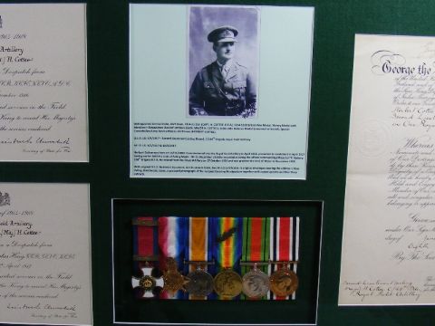 Major H. Cottee WW1 & WW2 Medal Set, As Captain DSO - Distinguished Service Order With Original Document, British War & Victory Medals, WW2 Defence Medal, Special Constable LS Medal, Framed