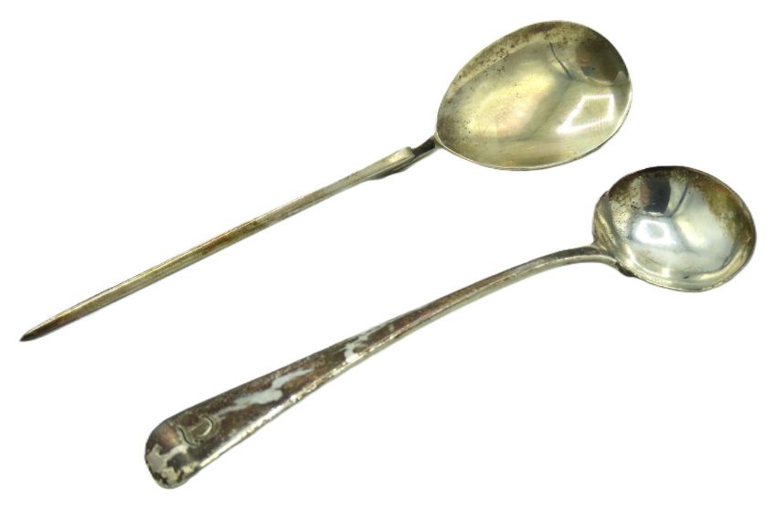 A 1928 Thomas Bradbury & Sons Sheffield silver cochlearium spoon twinned with an 1806 Georgian silver master salt by Soloman Hougham, 19.2g