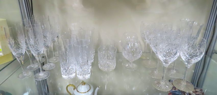 A collection of Royal Doulton cut glass crystal, eight wine glasses, eight tumblers, eight champagne glasses, two whisky, two brandy & two other champagne glasses