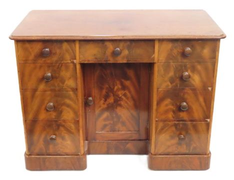A mid 19thC. Victorian satin birch knee hole desk by Constantine & Co. Leeds, set with nine drawers & two tier cupboard, 1015mm wide x 533mm deep x 762mm high
