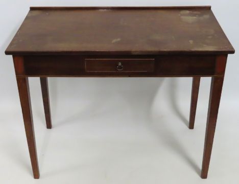 A 19thC. former card table converted to side table with drawer, 890mm wide x 460mm deep x 726mm high