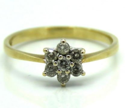 A 9ct gold daisy style ring set with approx. 0.14ct diamond, 1.4g, size M