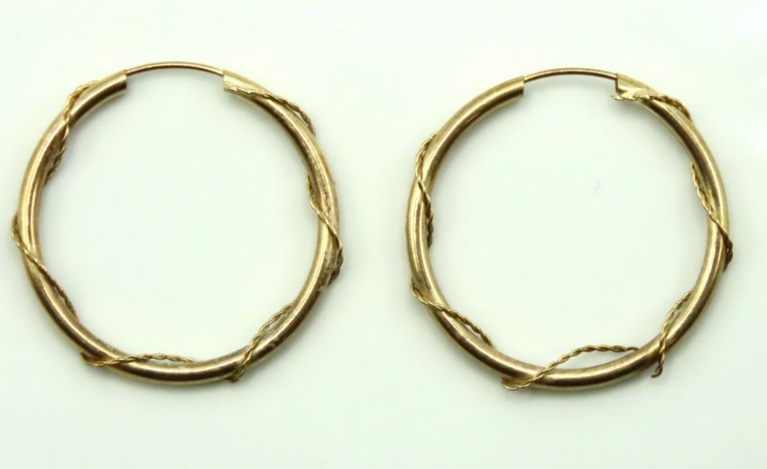 A pair of 9ct gold hoop earrings, 28mm diameter, 1.4g