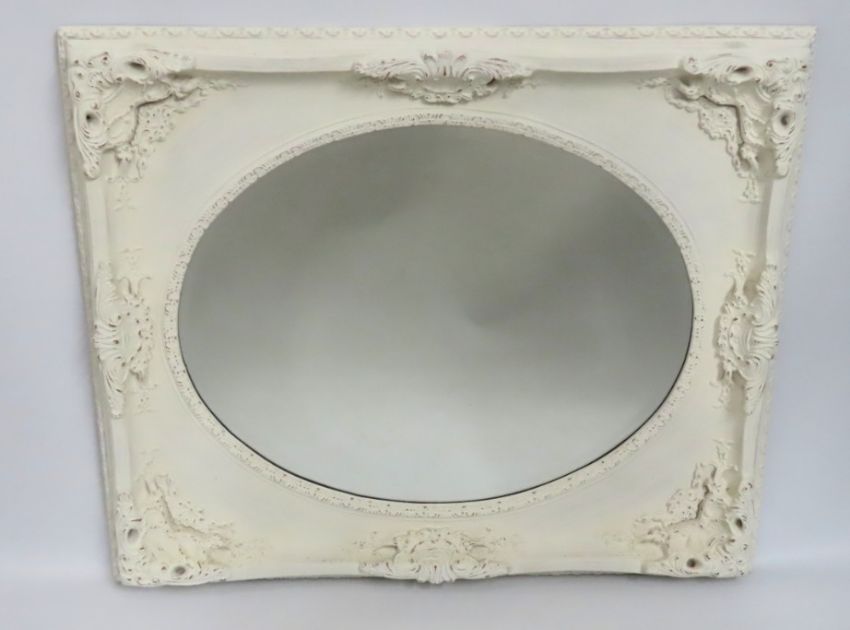 A substantial, contemporary decorative off white framed mirror, 915mm x 765mm
