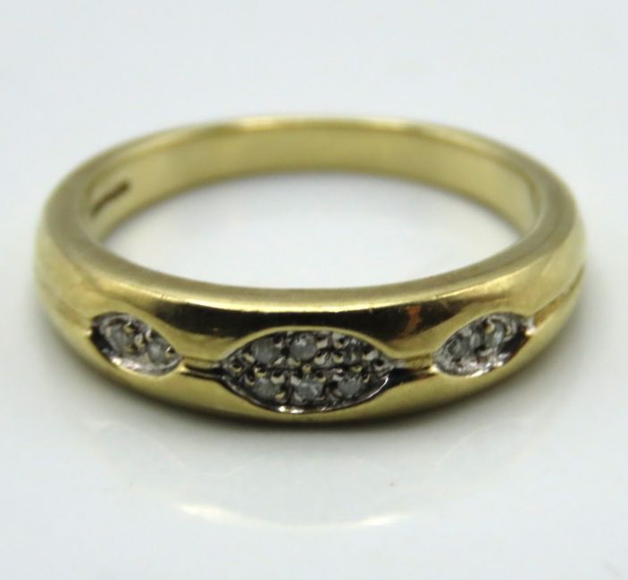 A 9ct gold ring set with ten small diamonds, 2.9g, size P