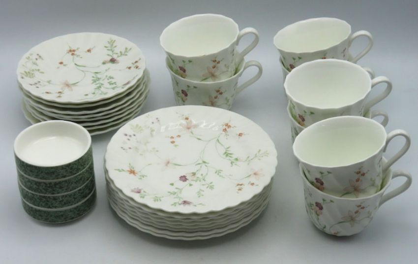 Twenty four pieces of Wedgwood Campion porcelain & four Doulton butter dishes