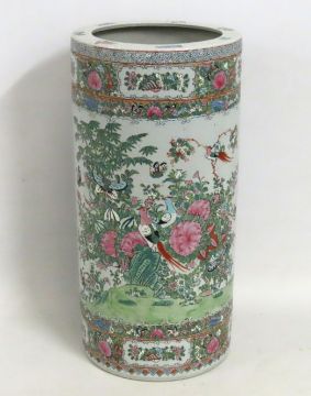 A 20thC. Chinese famille rose porcelain stick/umbrella stand, 460mm tall x 227mm diameter