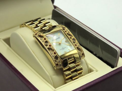 An Ingersoll "Gems Exotic" wristwatch set with smoky quartz, garnet & white topaz, case 35mm x 27mm