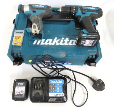 A Makita CLX202AJ combi drill kit containing two drills & two batteries