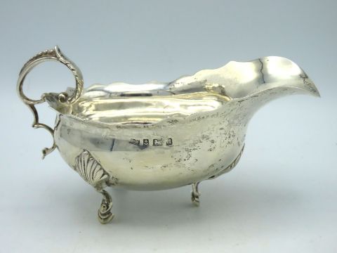 A 1900 late Victorian Birmingham silver sauce boat by Charles Horner, feet are bent, 173mm wide, 207g