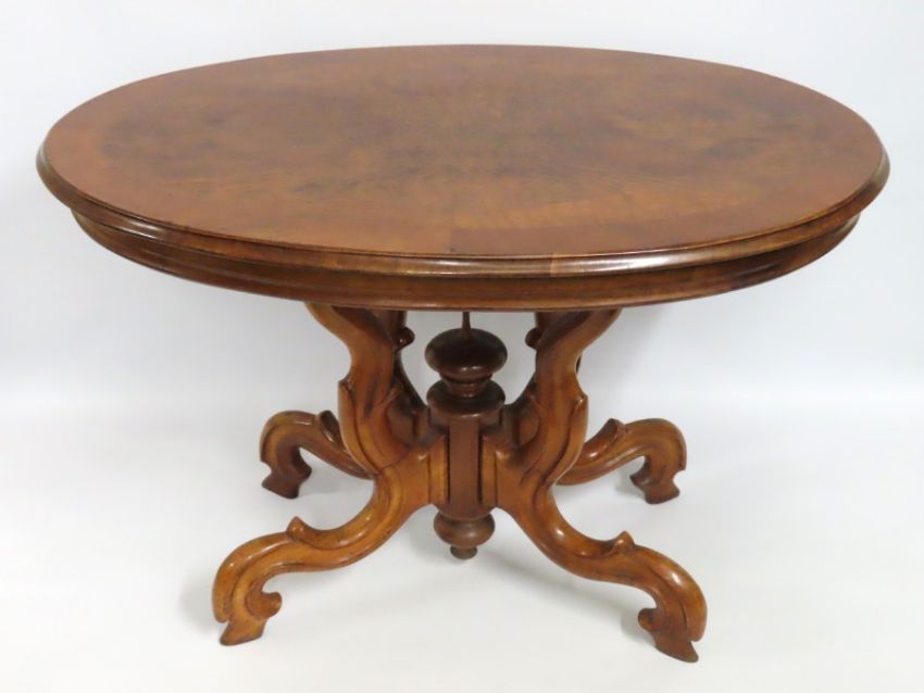 A Victorian walnut dining table with ornate legs, 1165mm wide x 760mm deep x 768mm high