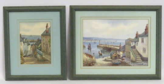 Thomas Herbert Victor (1894-1980), Penzance School of Art, two watercolours of Cornish harbours "Mousehole" & "Newlyn", largest 371mm x 264mm