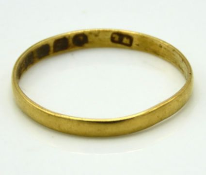 An antique 22ct gold band, 1g, size L/M