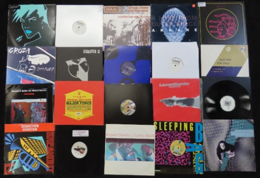 From the collection of Jonathan Davey, one hundred vinyl records that may include 12in singles, LP &/or EPs. Artists & dance labels to include among others Joan Baez, St. Etienne, INXS, Octave One, UB40, DJ Zinc, Depeche Mode, Sade, Phaze One, Frankie Goes To Hollywood, Level 42, Way Out West, Ragga Twins, MJ Cole, Narcotic, Roberta Flak, Kenny Dope, Tonja Dantzler, Dynamic Gov'nors, RSW, Roxy Music, Carribean Carnival, Ramsey & Fen Graham Central Station, Haai, Deep Dish, New World Aquarium, A. R. Kane, Luke Slater, Art-Form, Octave One, Nightcrawlers, River & Phoenix, The Pasedenas & Asa Moto, sample shown, further images on the-saleroom.com