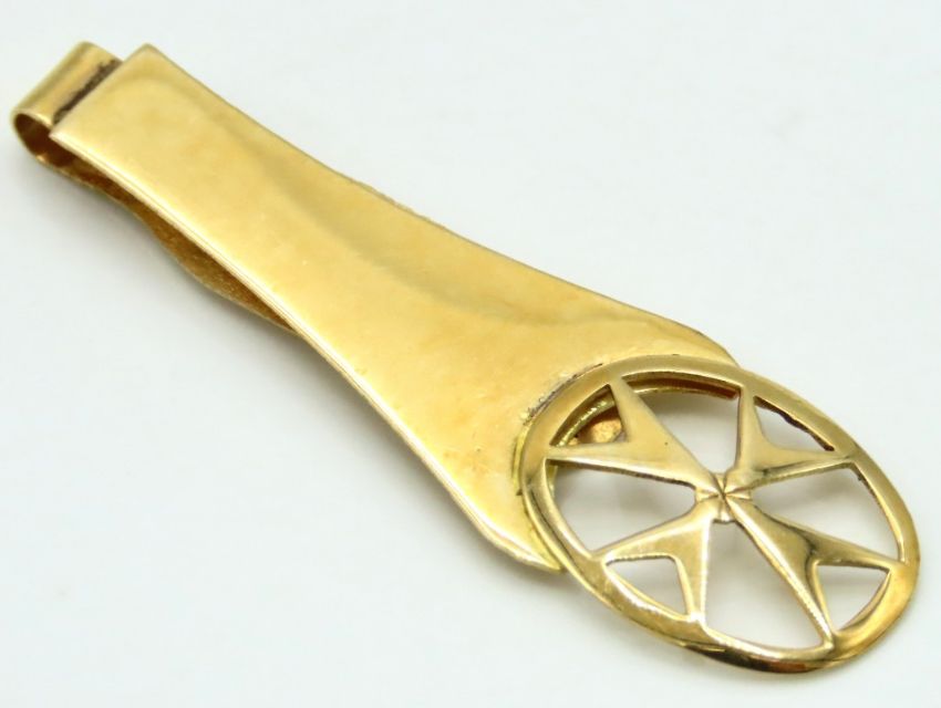 An 18ct gold money/tie clip with Maltese cross, 48mm long, 4.1g
