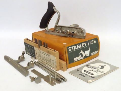 A boxed Stanley no. 50S combination plane with some cutters & guide