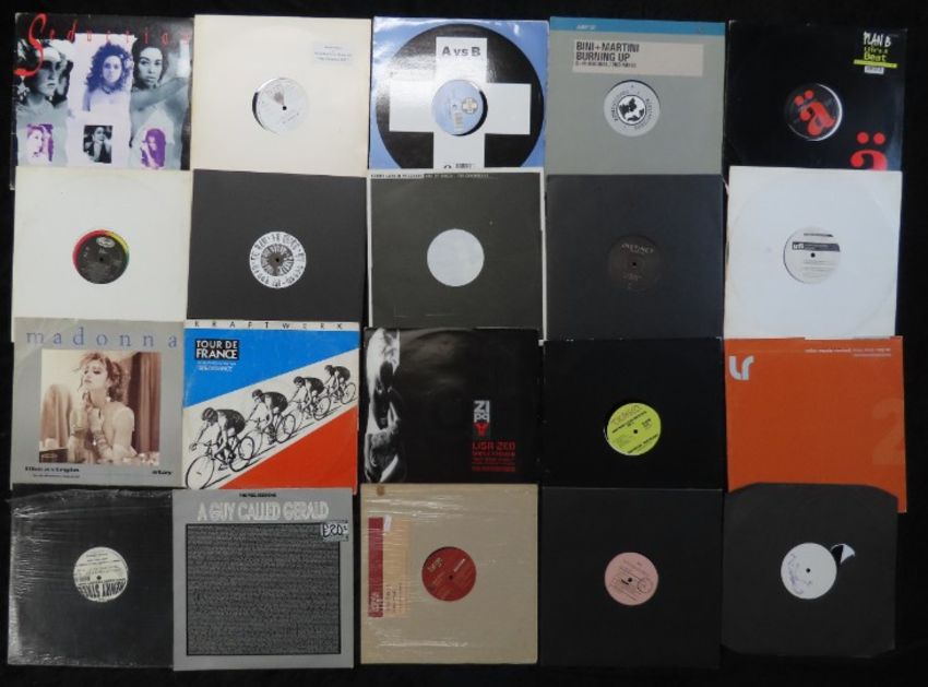 From the collection of Jonathan Davey, one hundred vinyl records that may include 12in singles, LP &/or EPs. Artists & dance labels to include among others Kraftwerk, Vince Clarke, 808 State, Plan B, Madonna, Peel Sessions, Daft Punk, Innocence, Gerd, Nightmares On Wax, Don Letts, DJ Pierre, Olympians, Koto, Tullio De Piscopo, Sportelli, Suad, KC Flight vs Funky Junction Voices, A Guy Called Gerald, LFD, RSW, The Vision, Danny Krivit, Plastic People Ltd. Plastikman Slinky, World2World & Rooster, sample shown, further images on the-saleroom.com